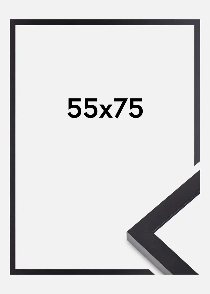 Are you looking for a stylish and versatile photo frame for your favorite pictures? This elegant black photo frame is perfect for images sized 55x75 cm. With its matte finish and sleek design, it becomes an excellent complement to all types of interiors. The frame has an 18 mm wide frame strip that provides a discreet yet clear framing of your pictures.