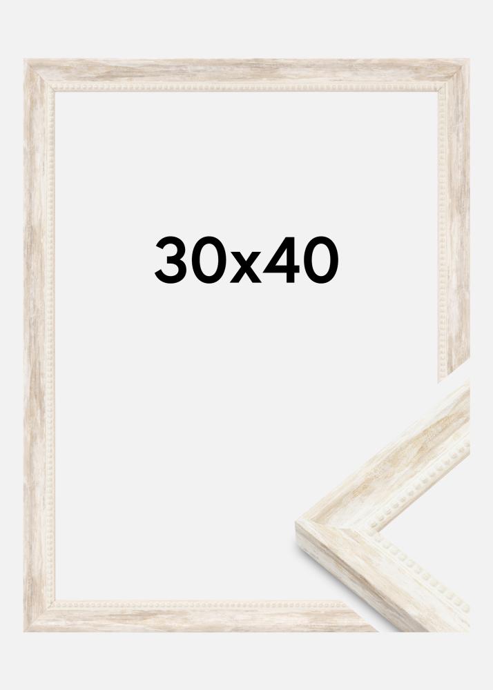 This beautiful photo frame in white color is a perfect combination of rustic charm and sleek elegance. With its size of 30x40 cm, it is ideal for showcasing your favorite subjects, whether it's artwork or photographs. The frame has a 25 mm wide frame listing and a depth of 19 mm, giving it a robust and solid feel.