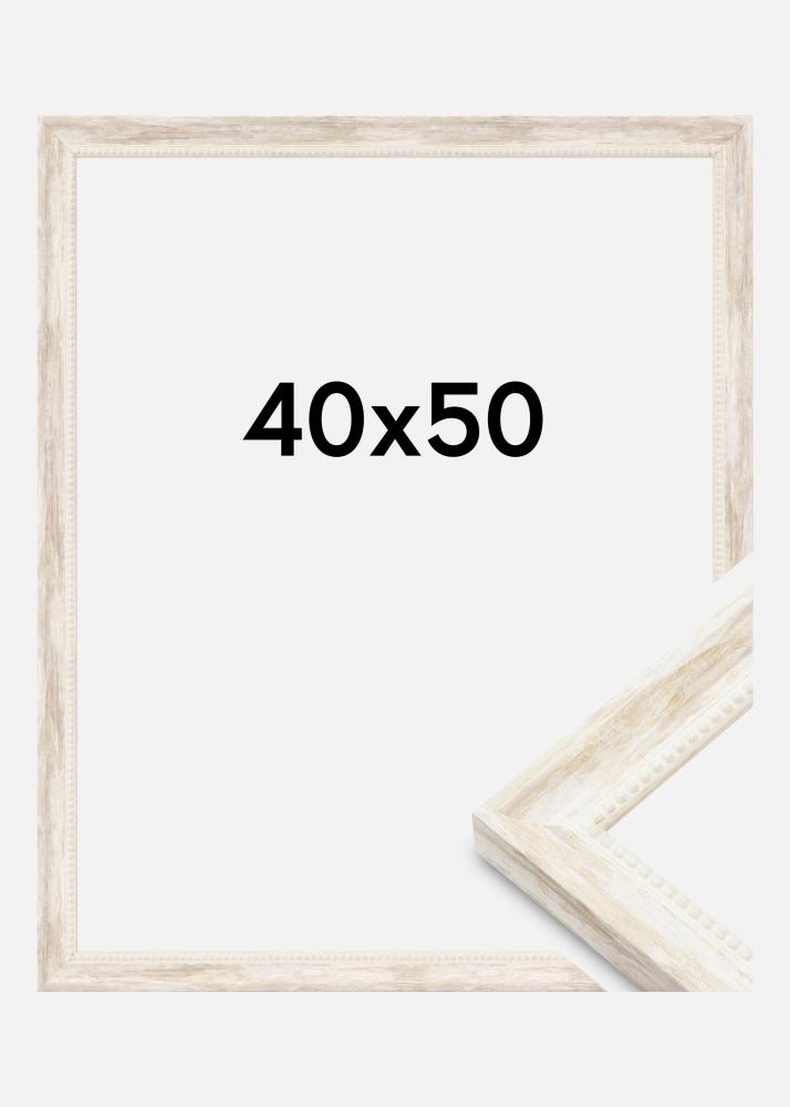 This beautiful photo frame in white color is a perfect combination of rustic charm and sleek elegance. With its size of 40x50 cm, it is ideal for highlighting your favorite subjects, whether it be artwork or photographs. The frame features a decorative beaded edge along the inside, which gives it a classic and detailed design that suits both modern and traditional interiors.