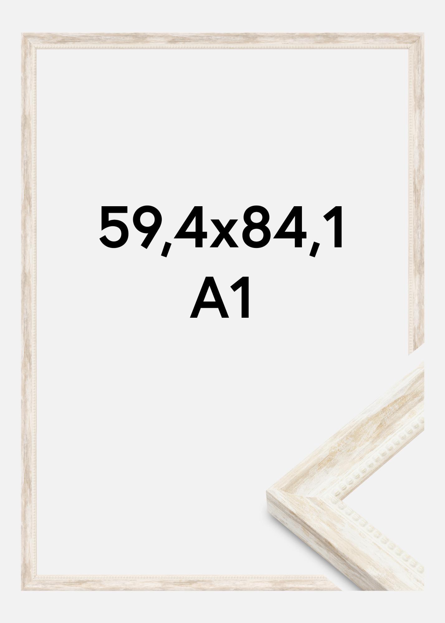 This beautiful photo frame in the size 59.4x84 cm is a perfect combination of rustic charm and sleek elegance. With its white color and decorative beaded edge along the inside, it offers a subtle antique feel that enhances both artworks and photographs. This photo frame is made of wood and has a 25 mm wide frame edge and a depth of 19 mm, giving it a robust and solid feel.