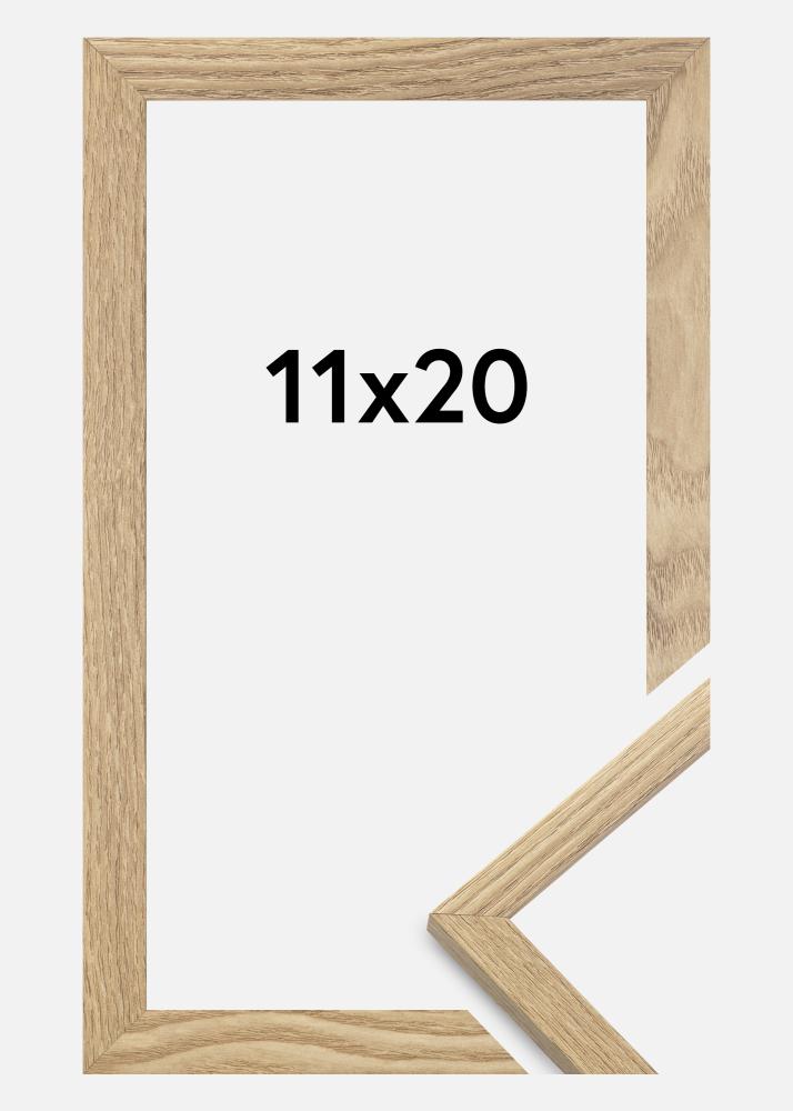 The frame is made from MDF material wrapped with an oak style finish and has a slender frame profile of 14 mm. There is plenty of room to complement your images with an elegant passepartout or mount as the frame has an inner depth (rabbet) of 12 mm.