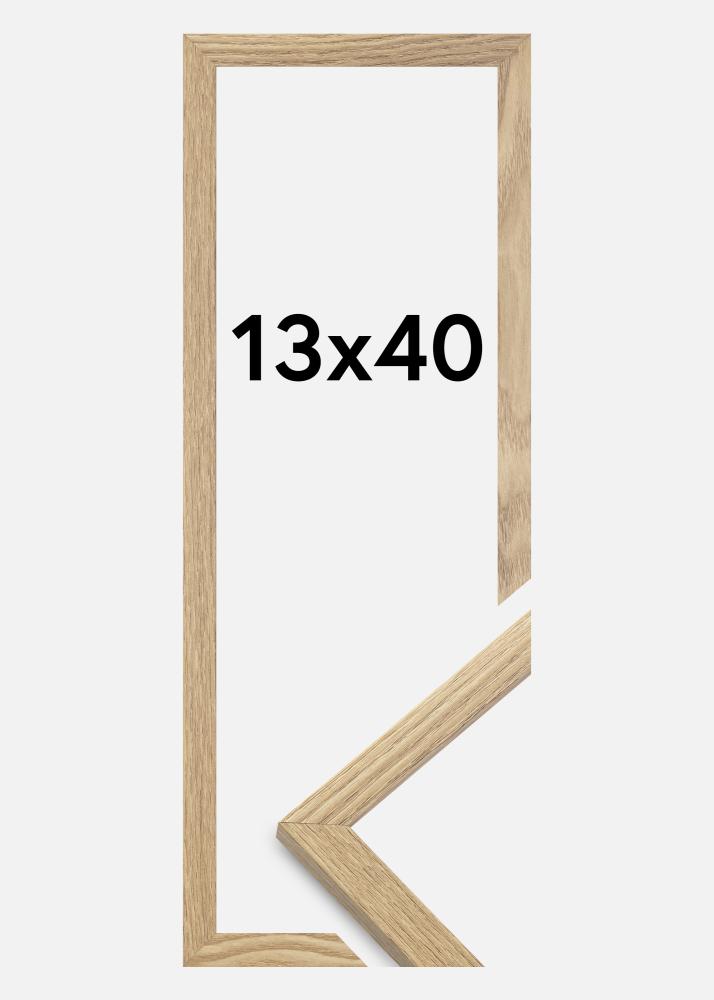 The frame is made from MDF material wrapped with an oak style finish and has a slender frame profile of 14 mm. There is plenty of room to complement your images with an elegant passepartout or mount as the frame has an inner depth (rabbet) of 12 mm.