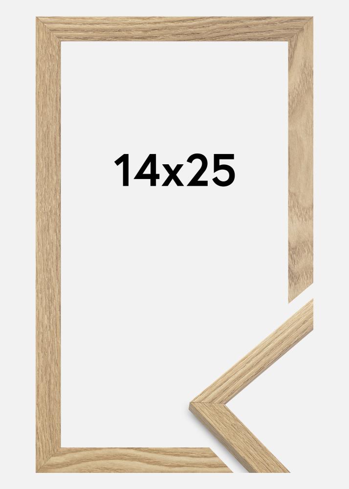 The frame is made from MDF material wrapped with an oak style finish and has a slender frame profile of 14 mm. There is plenty of room to complement your images with an elegant passepartout or mount as the frame has an inner depth (rabbet) of 12 mm.