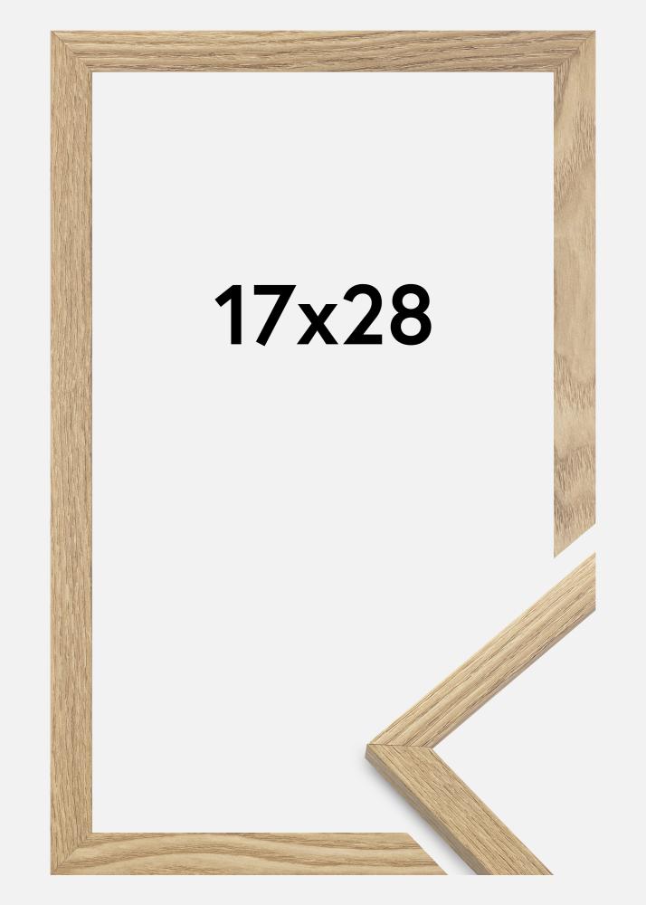 The frame is made from MDF material wrapped with an oak style finish and has a slender frame profile of 14 mm. There is plenty of room to complement your images with an elegant passepartout or mount as the frame has an inner depth (rabbet) of 12 mm.