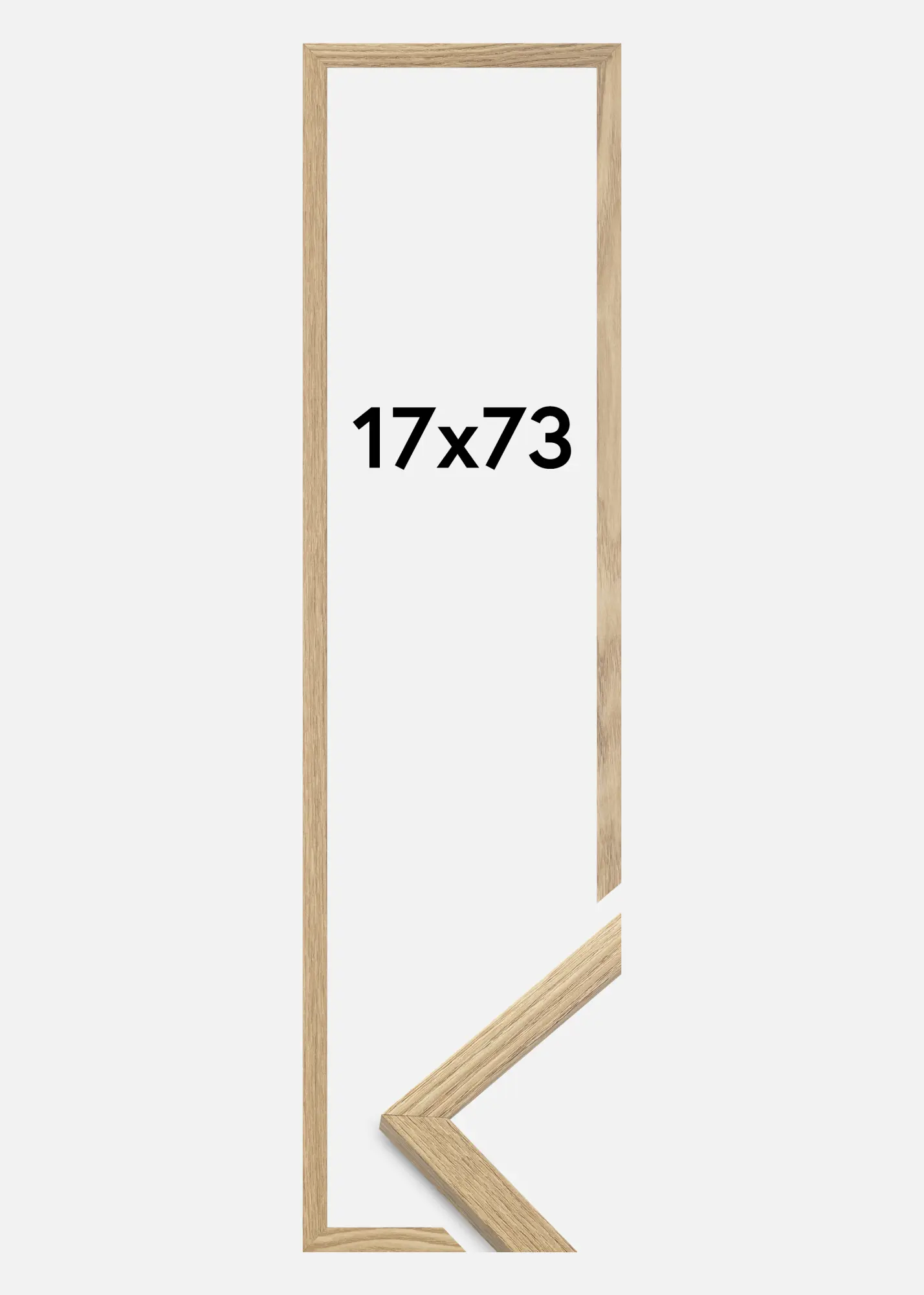 The frame is made from MDF material wrapped with an oak style finish and has a slender frame profile of 14 mm. There is plenty of room to complement your images with an elegant passepartout or mount as the frame has an inner depth (rabbet) of 12 mm.