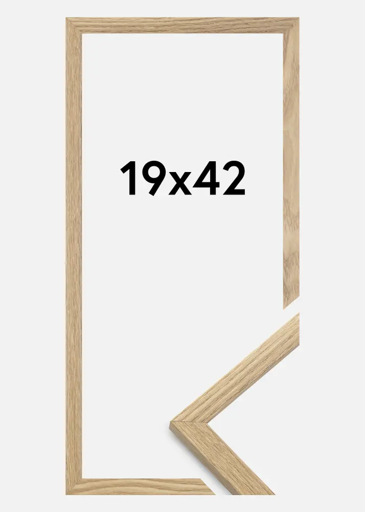 The frame is made from MDF material wrapped with an oak style finish and has a slender frame profile of 14 mm. There is plenty of room to complement your images with an elegant passepartout or mount as the frame has an inner depth (rabbet) of 12 mm.