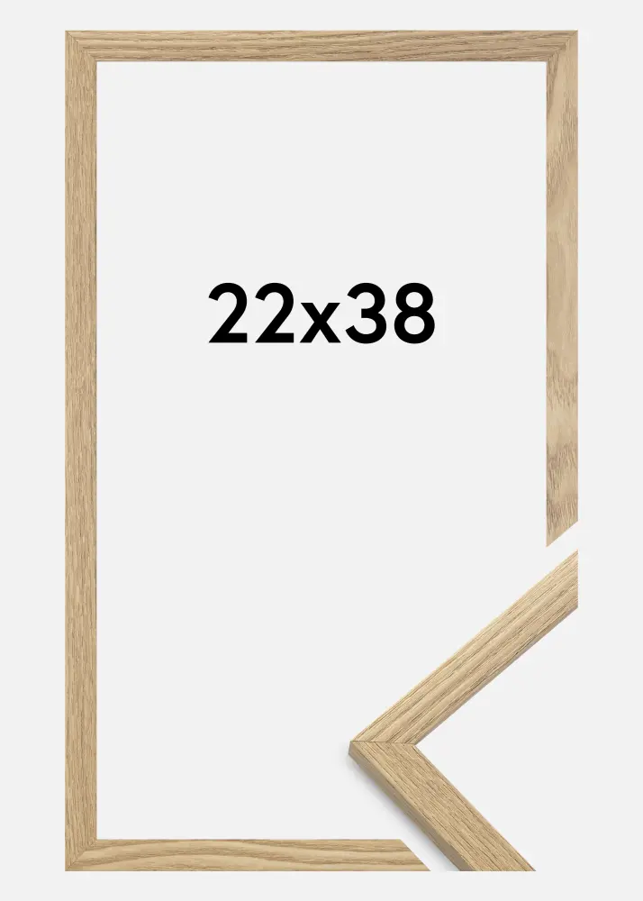 The frame is made from MDF material wrapped with an oak style finish and has a slender frame profile of 14 mm. There is plenty of room to complement your images with an elegant passepartout or mount as the frame has an inner depth (rabbet) of 12 mm.