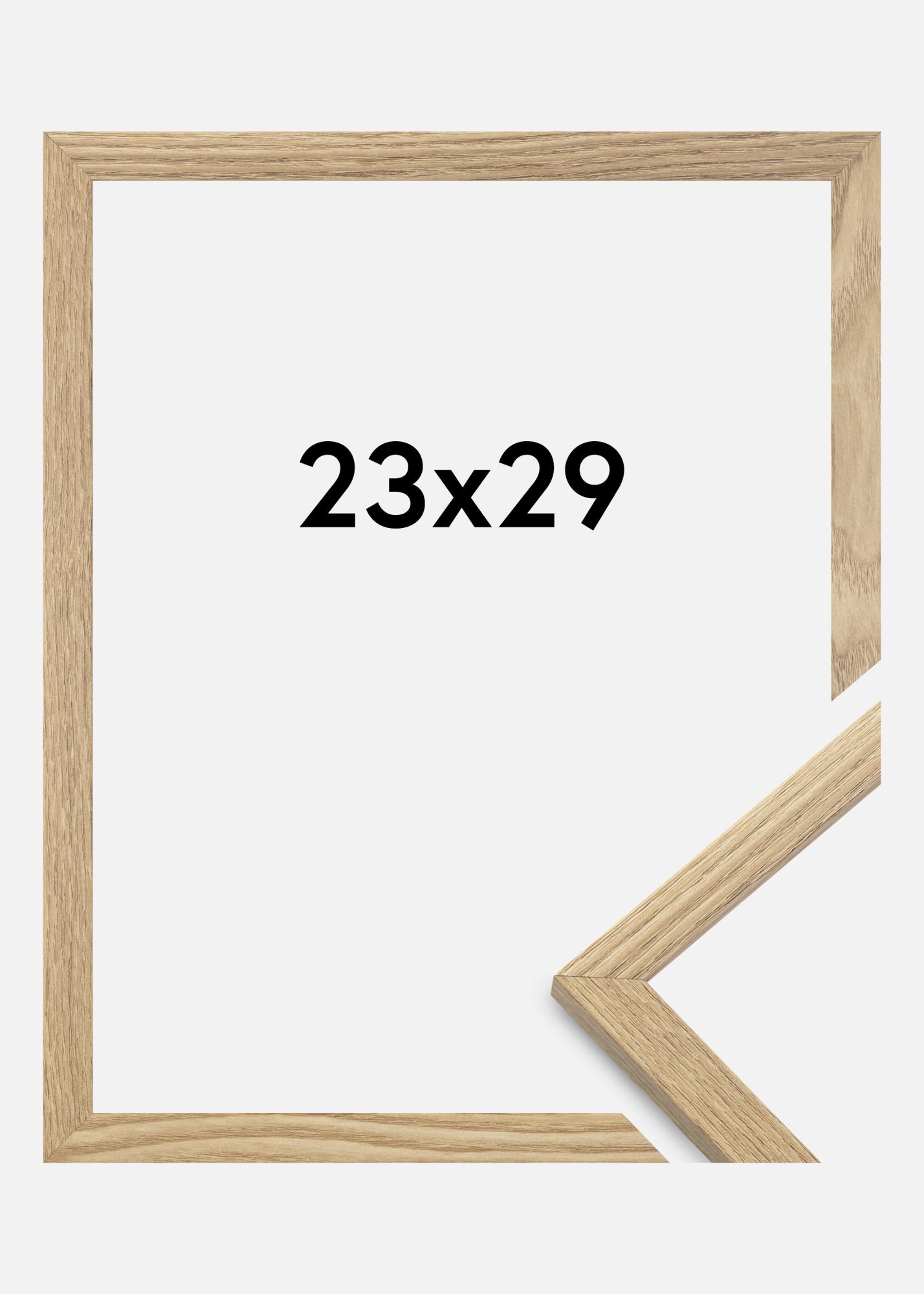 The frame is made from MDF material wrapped with an oak style finish and has a slender frame profile of 14 mm. There is plenty of room to complement your images with an elegant passepartout or mount as the frame has an inner depth (rabbet) of 12 mm.