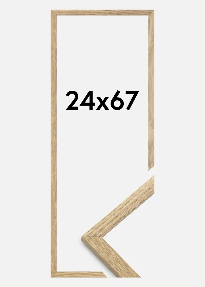 The frame is made from MDF material wrapped with an oak style finish and has a slender frame profile of 14 mm. There is plenty of room to complement your images with an elegant passepartout or mount as the frame has an inner depth (rabbet) of 12 mm.