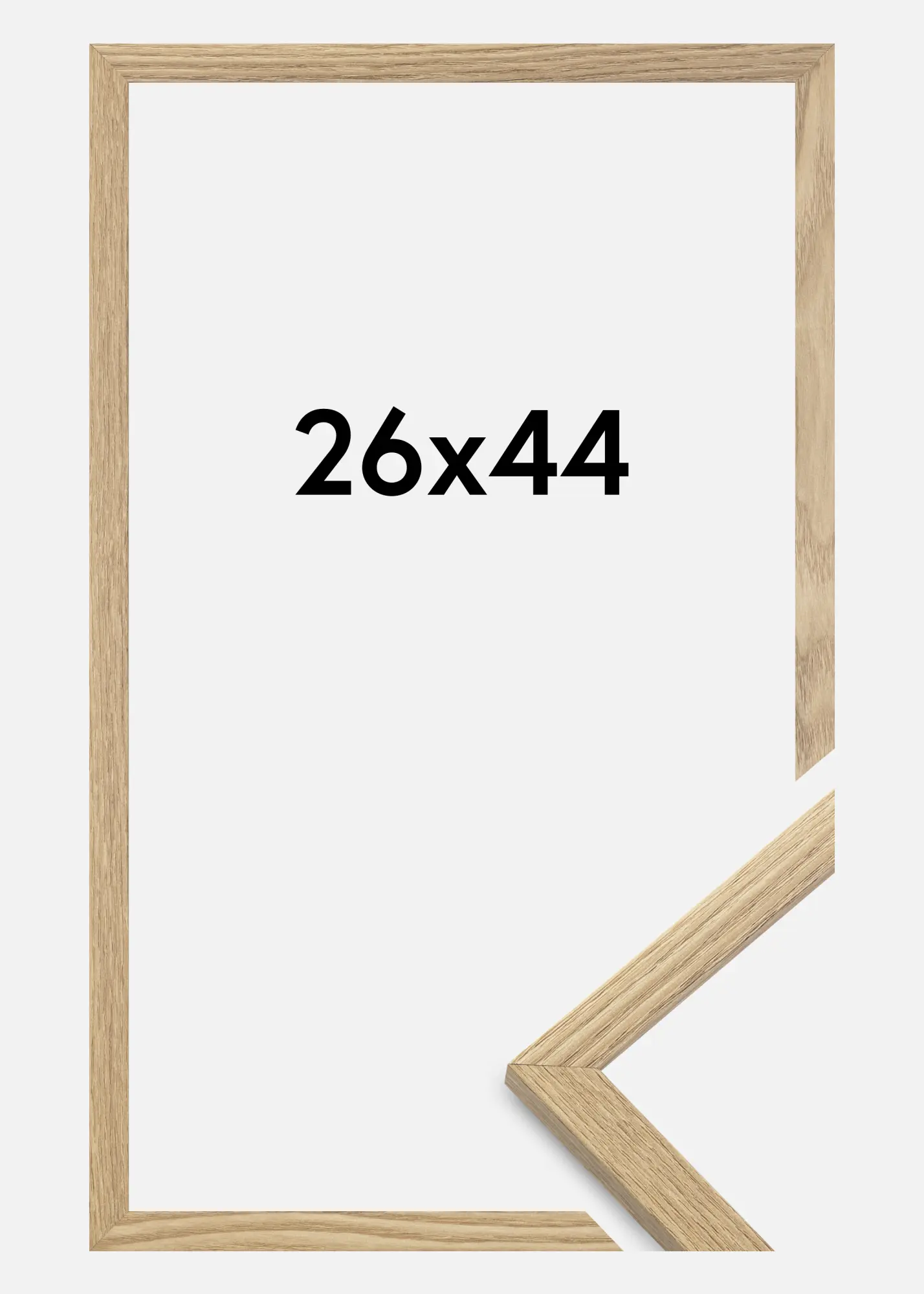 The frame is made from MDF material wrapped with an oak style finish and has a slender frame profile of 14 mm. There is plenty of room to complement your images with an elegant passepartout or mount as the frame has an inner depth (rabbet) of 12 mm.