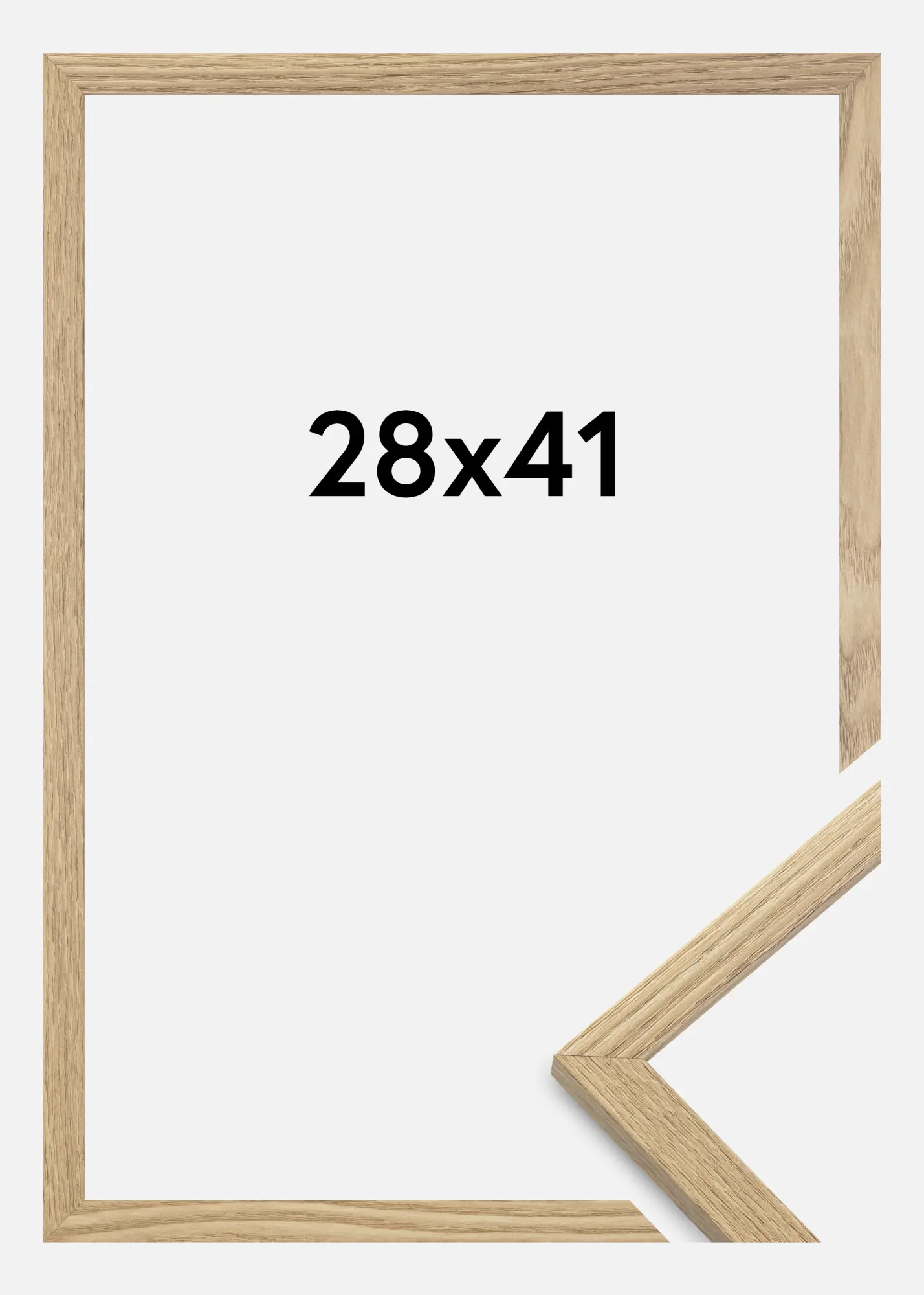 The frame is made from MDF material wrapped with an oak style finish and has a slender frame profile of 14 mm. There is plenty of room to complement your images with an elegant passepartout or mount as the frame has an inner depth (rabbet) of 12 mm.