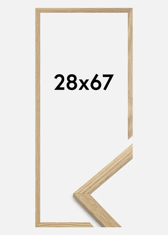 The frame is made from MDF material wrapped with an oak style finish and has a slender frame profile of 14 mm. There is plenty of room to complement your images with an elegant passepartout or mount as the frame has an inner depth (rabbet) of 12 mm.