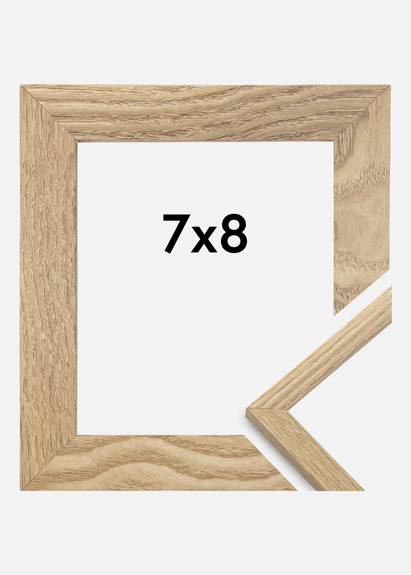 The frame is made from MDF material wrapped with an oak style finish and has a slender frame profile of 14 mm. There is plenty of room to complement your images with an elegant passepartout or mount as the frame has an inner depth (rabbet) of 12 mm.