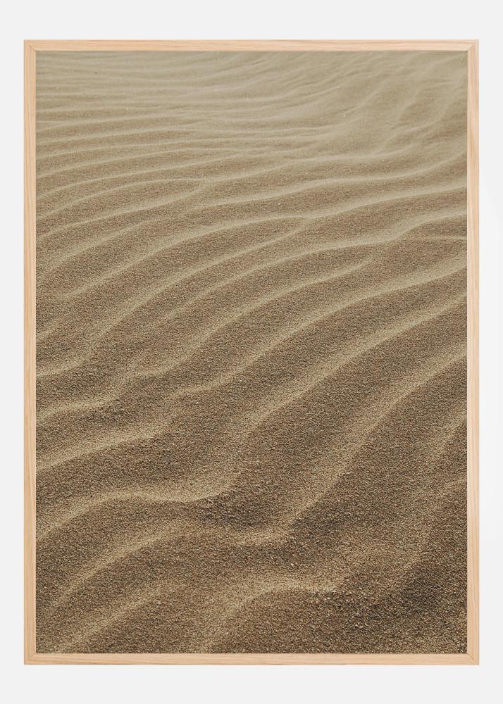 A simple poster of ripples in the sand. The sand goes on and on filling the entire image. Close up, the grains of sand can be seen in the wind-created rivulets in the desert. Marvel at the wonders of nature in this stunning photo.