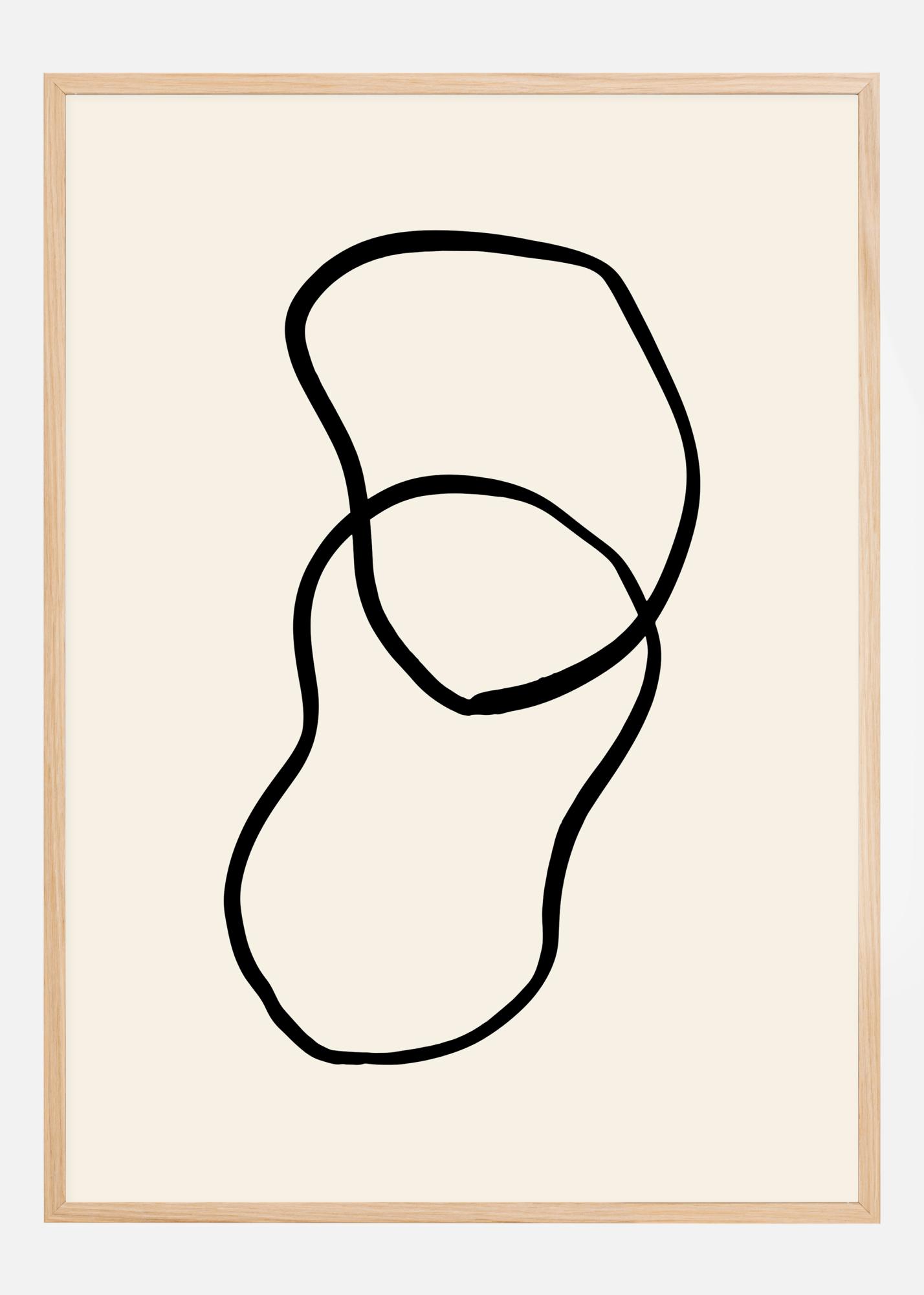 An abstract poster of two shapes intertwining together. Two blobby shapes are drawn in bold black lines and cross over to create a third intersecting shape. Add this fun black and white design to a colourful wall for that modern art vibe in your home.