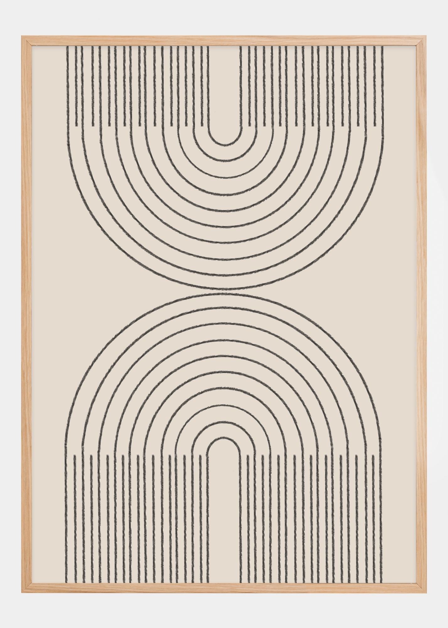 This minimalist poster captures the essence of simplicity with its streamlined architectural design. The sleek arches, drawn with precision, create a sense of calm and structure, while the black on white background provides a clear visual contrast that is both bold and simple. This artistic representation is both modern and timeless, suitable for a variety of interior styles.