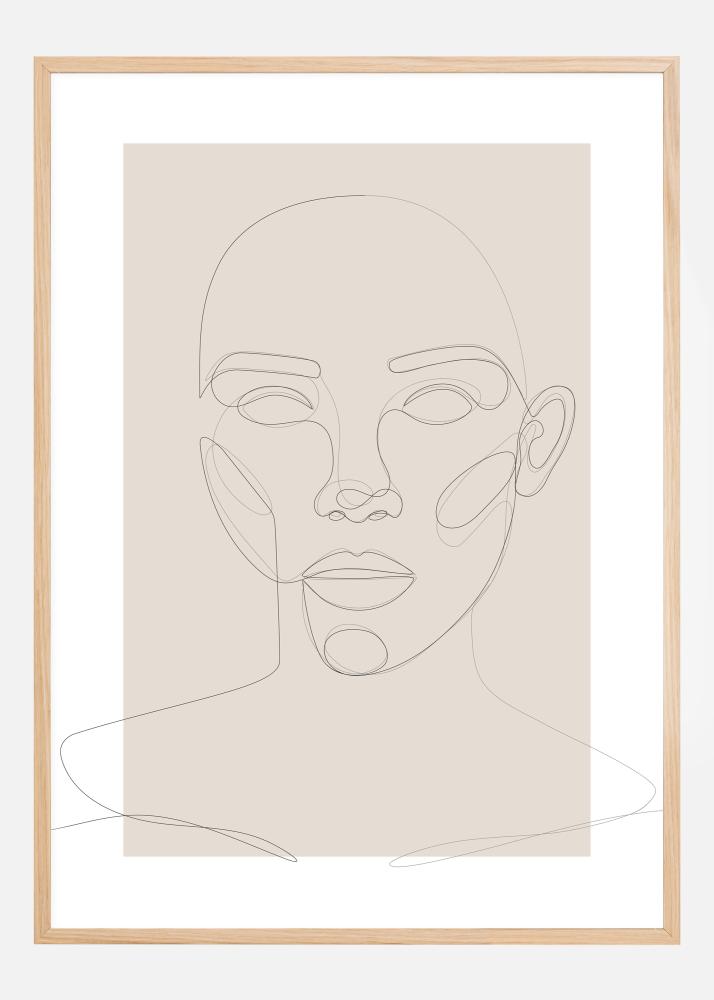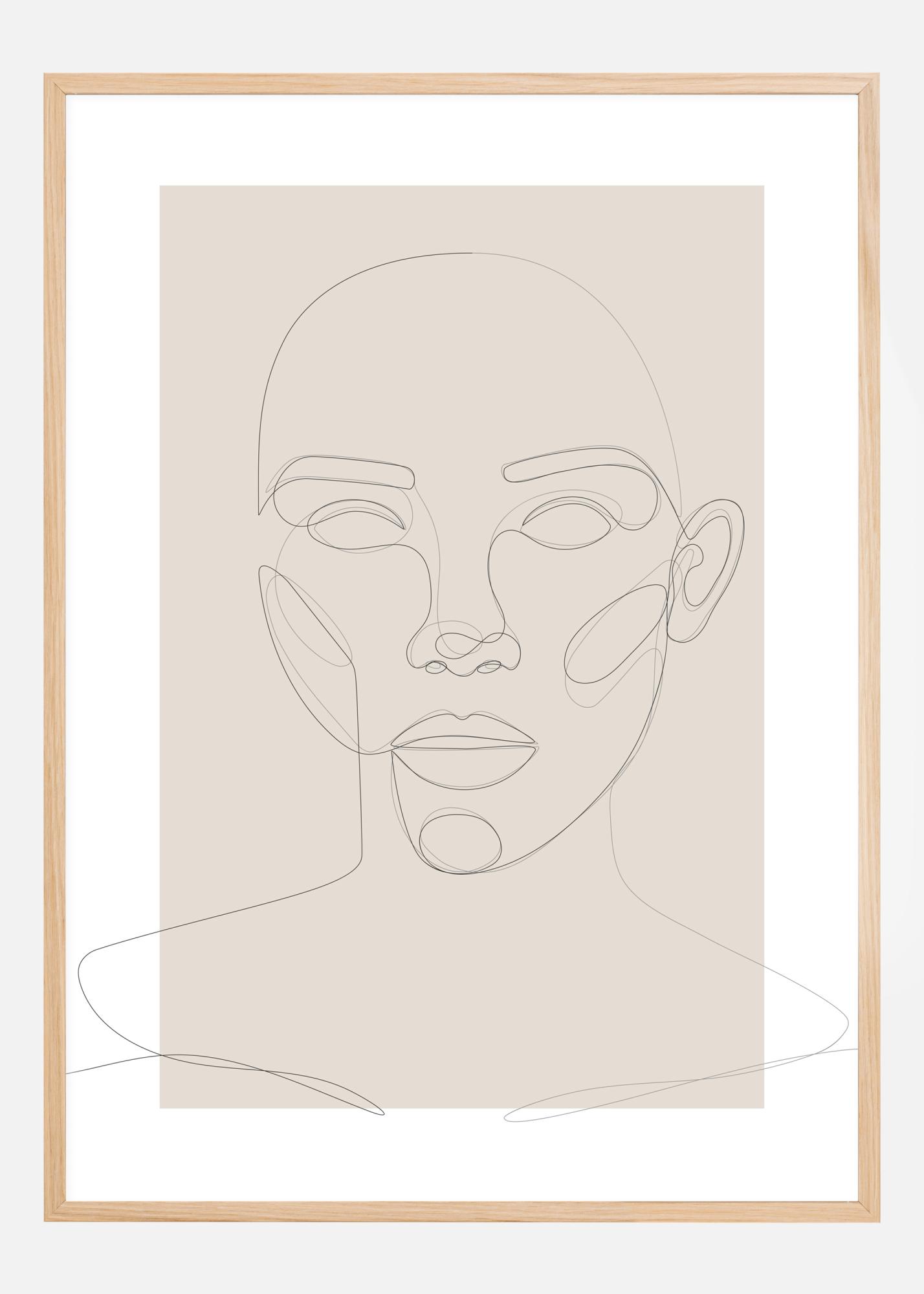 A simple abstract poster of a face created using thin lines. The face stares straight out and is created using a single long flowing line that adds in all the main features of the face in a fascinating way. Set on a grey background, this works best on a neutral wall.