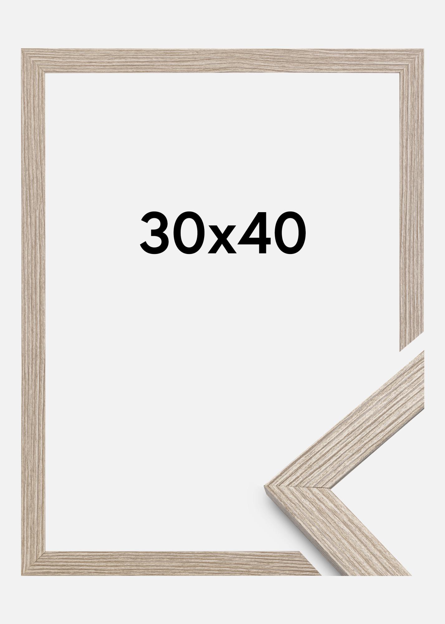 This is a stylish, high quality picture frame, made from pine and with real glass. This attractive picture frame has a "graige" oak colour, which frames your picture in a fashionable way. The Stylish Graige Oak colour comes in several different sizes, allowing you to match several of them together. This particular model suits photos measuring 30x40 cm. This is a photo frame that comes with wall fixings allowing you to hang it up in both portrait and landscape orientations. The frame's edge is 20 mm wide and 14 mm deep.