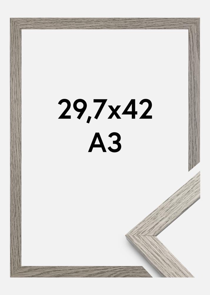 Stylish Grey Oak is a modern wooden picture frame made from pine. This photo frame has a very stylish grey oak colour. The frame's edge is 20 mm width and 14 mm deep. On the back of the frame, you'll find wall fixings for both portrait and landscape hanging. With this beautiful picture frame, you could, for example, use a black and white photo that matches the edge's exclusive grey shade. Or why not choose a colourful image to create an attractive contrast? The Stylish Grey Oak picture frame series comes in several different colours and sizes, allowing you to match them together. This picture frame suits A3-sized (29.7x42 cm) pictures.
