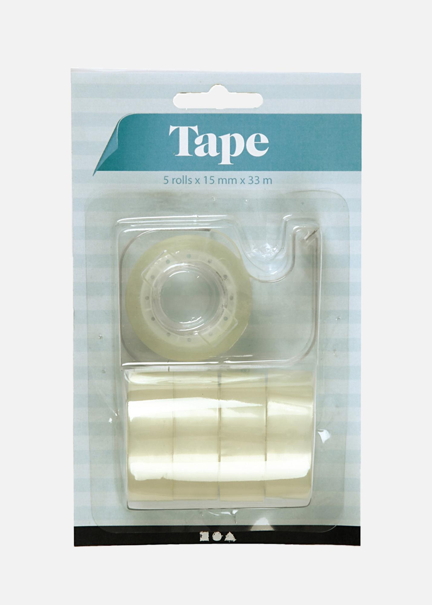 This tape dispenser is a practical and stable solution for easy and smooth use of tape. Perfect for gift wrapping, crafts, and office use. Designed to stand firmly on the table and provide a smooth tearing of the tape. Additionally, 5 rolls of tape are included