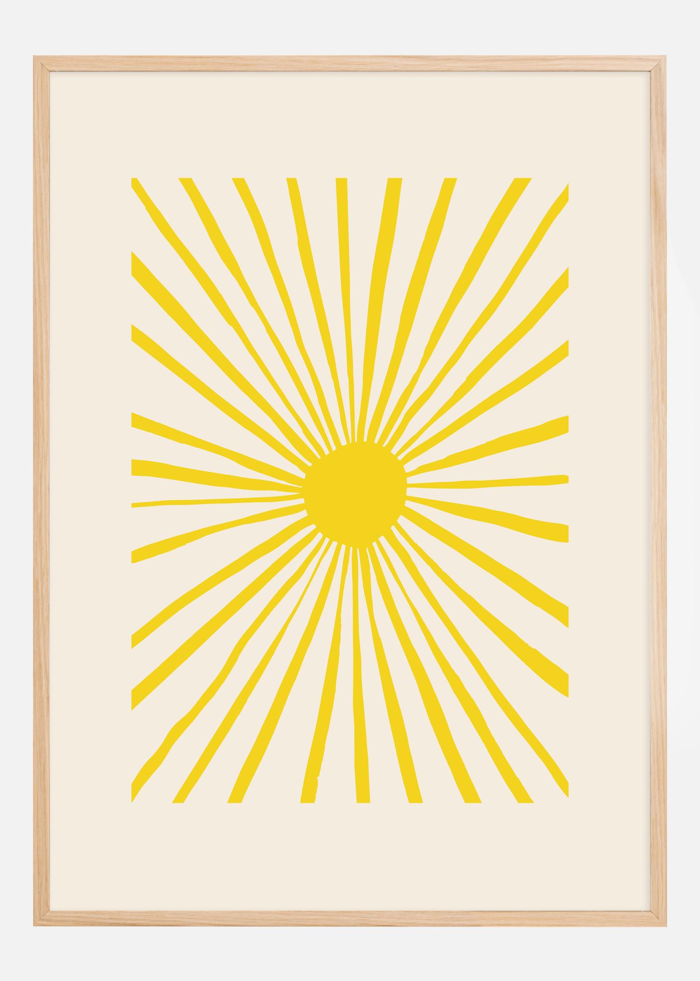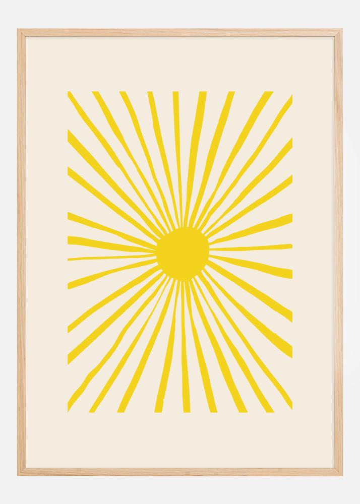 Give your wall a splash of sunshine with this vibrant and energizing poster that captures the essence of a radiant sun. This minimalist design is characterized by its strong and radiant yellow hues that radiate from a central point, creating a dynamic effect of sun rays spreading over a soothing cream-colored background. This sun poster conveys a sense of warmth and joy and becomes an instant eye-catcher in any room.