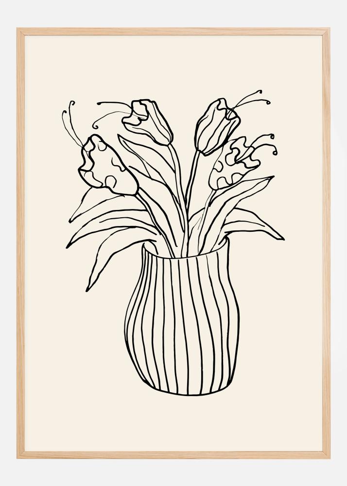 A stylised poster of flowers in a vase. The strong bold black lines roughly draw out the flowers in the vase. Sitting on a white background, these flowers stand out clearly. Add a dab of colour to the image by hanging this on a bright, bold wall.
