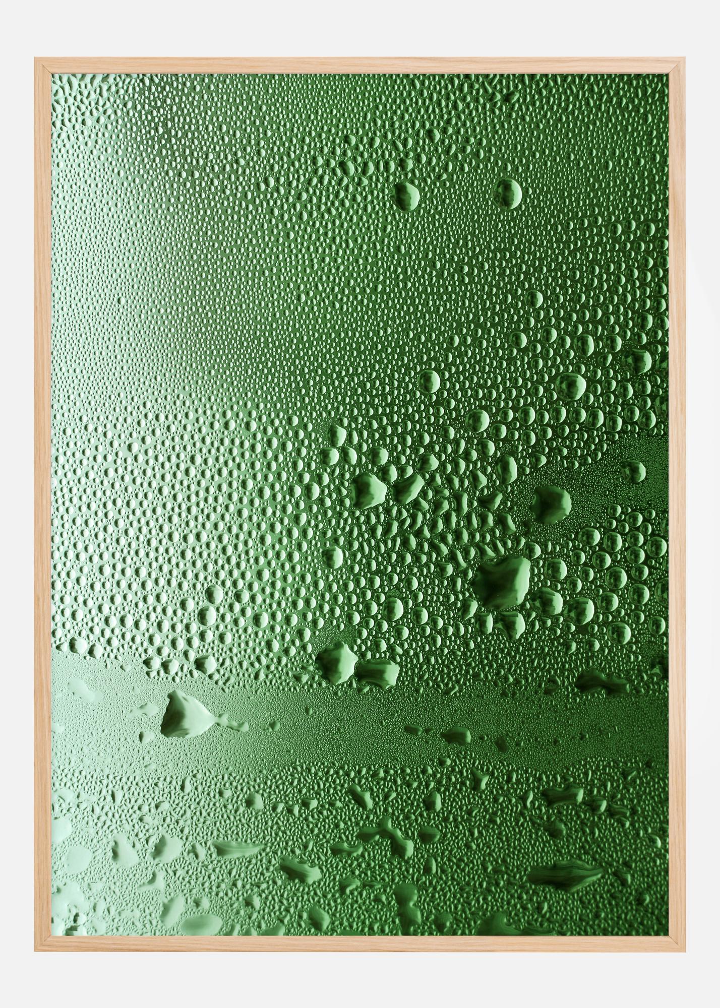 Rediscover the simple beauty of nature's elements with our poster that highlights the freshness of water droplets on a shiny surface. This artwork captures the moment when the droplets rest quietly on a vibrant green background, each reflecting the light and adding depth and texture to the simple composition. This print is a subtle reminder of life's pure necessities and nature's calm presence.