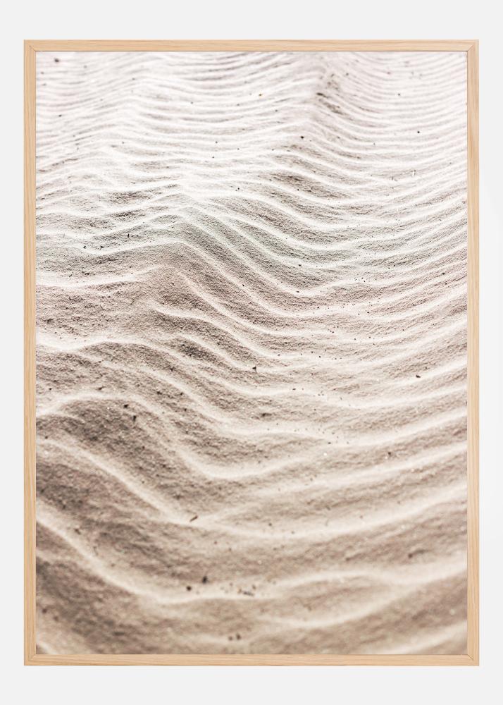 A patterned poster of a close-up of ripples in the sand. Marvel at the way the wind creates gentle waves in the sand as these ripples travel up towards a white light in the poster. Get lost in this expansive sandy poster.