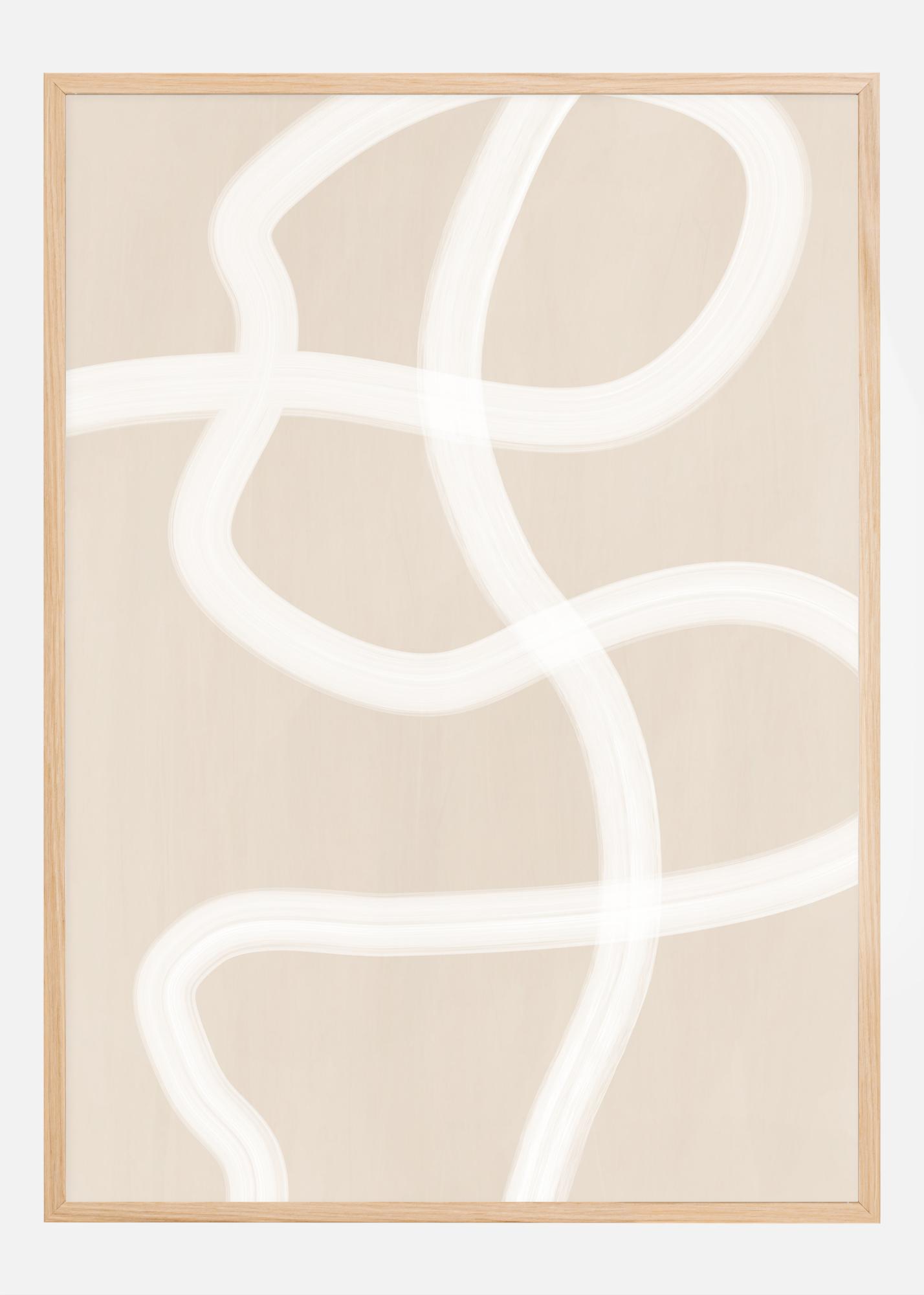 The sweeping white brushstrokes of this poster against a warm beige background offer a captivating and contemporary aesthetic. Its flowing lines and organic shapes convey a sense of movement and spontaneity, while maintaining a pared-down and clean feel typical of modern minimalist design.