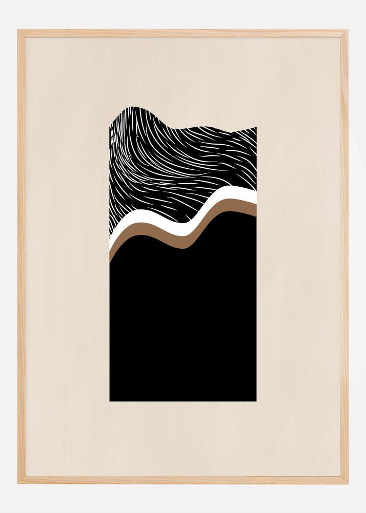 This poster combines bold graphics with a subtle color palette to create a visual contrast that is both striking and elegant. The black background adds depth to the artwork, while the dynamic white and gold-brown waves give an illusion of movement. This minimalist yet expressive design is inspired by both the natural world and modern art movements, and would be a striking addition to any modern home or office.