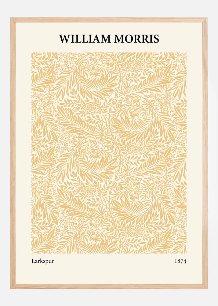 With its warm, monochromatic gold tone, this poster recreates the lavish design of William Morris' "Larkspur" from 1874. The rich composition of leaves and flowers dances across the paper, illustrating the skill and precision for which Morris is known within the Arts and Crafts movement. This poster brings a sense of warmth and sunshine to any room and is a wonderful tribute to the Victorian era's craftsmanship.